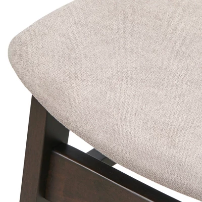 - Upholstered in a neutral Latte Brown Linen-like fabric with a curved back chair design