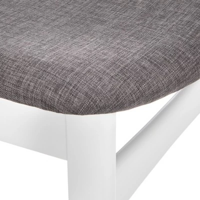 Give your dining room or kitchen personality with the Tania Dining Chair from Buylateral. This mid-century inspired design boasts a curved back, upholstered in a timeless dark gray fabric. Padded foam cushioning for added comfort, these chairs are crafted in beechwood with stylish angled legs in a crisp white finish. Sold as a set of two (2) chairs.