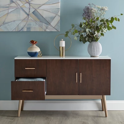 - Buffet designed with Mid-century inspired style with clean lines and angled legs