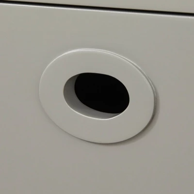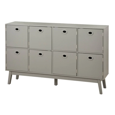 - Features eight storage compartments with grommet hole style door poor pulls and angled legs